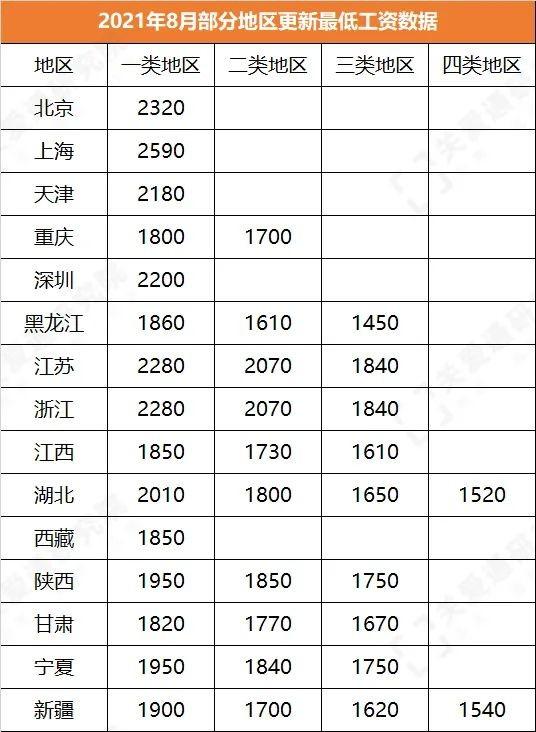 附:截至8月底,全国更新的最低工资数据