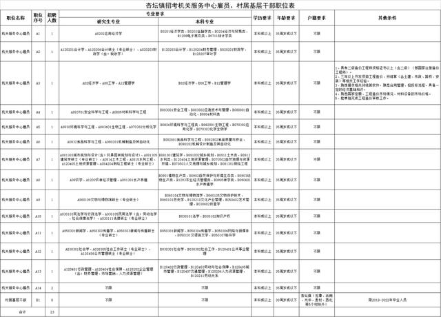 因工作需要,杏坛镇现向社会公开招考:机关服务中心雇员(安排在政府部门工作)、村居基层干部。具体事项如下: