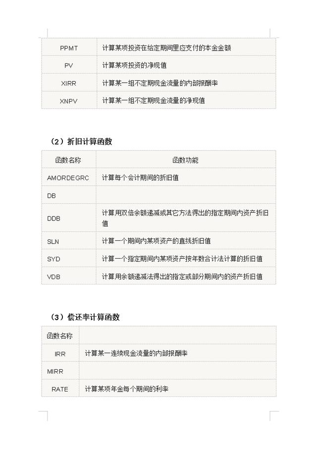 如:AMORDEGRC函数(计算每个会计期间的折旧值)、DDB函数(计算用双倍余额递减或其它方法得出的指定期间内资产折旧值)、SYD函数(计算一个指定期间内某项资产按年数合计法计算的折旧值)