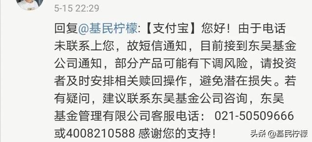 基金公司喊你卖基金啦微博网友发了一个评论给我,说是支付宝发了一则短信给他: