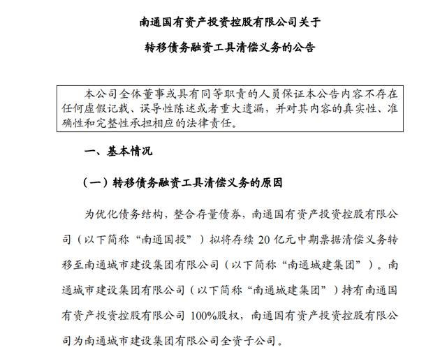 不过对于城投发行主体的转移债务工具清偿义务,南通国投是首例。