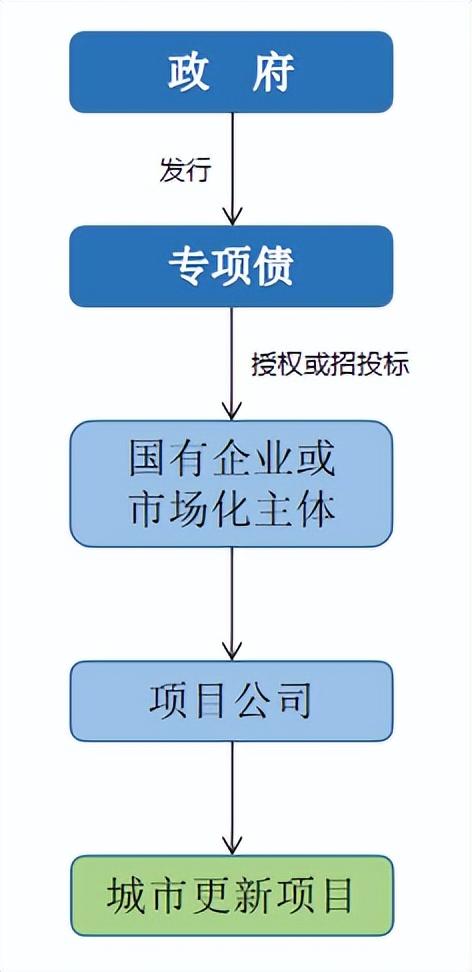 地方政府授权国有企业,通过发行企业债、公司债、政策性银行贷款等方式筹集城市更新项目资金。