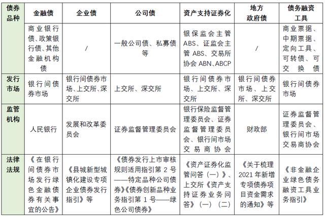 二、绿色债券的监管体系我国针对绿色债券监管的基本规定包括《绿色债券发行指引》以及《绿色债券支持项目目录(2021年版)》。除此之外,针对不同类型的绿色债券,其主管机构也发布了不同指引和规则,包括中国人民银行发布的《关于在银行间债券市场发行绿色金融债券有关事宜的公告》和银行间市场交易商协会制定的《非金融企业绿色债务融资工具业务指引》及配套表格,上海证券交易所(“上交所”)的《公司债券发行上市审核规则适用指引第2号——特定品种公司债券》以及深圳证券交易所(“深交所”)的《债券创新品种业务指引第1号——绿色公司债券(2021年修订)》等等。具体绿色债券的监管体系建制如下: