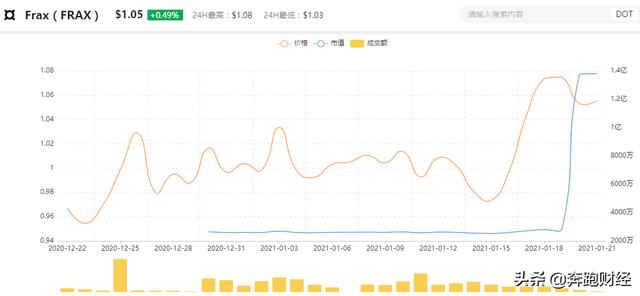 根据qkl123数据显示,从2020年12月22日至今,FRAX的价格正在围绕1美元波动,日波动率可控。