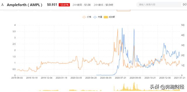 2020年首次将算法稳定币带火的Ampleforth(AMPL),基本上与Ferdinando Ametrano教授提出的哈耶克货币运行机制一致。