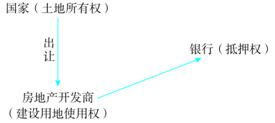 在上图中,开发商通过出让获得的建设土地使用权抵押给银行之后,银行因此而享有的抵押权就是以建设用地使用权作为其客体或者对象的。
