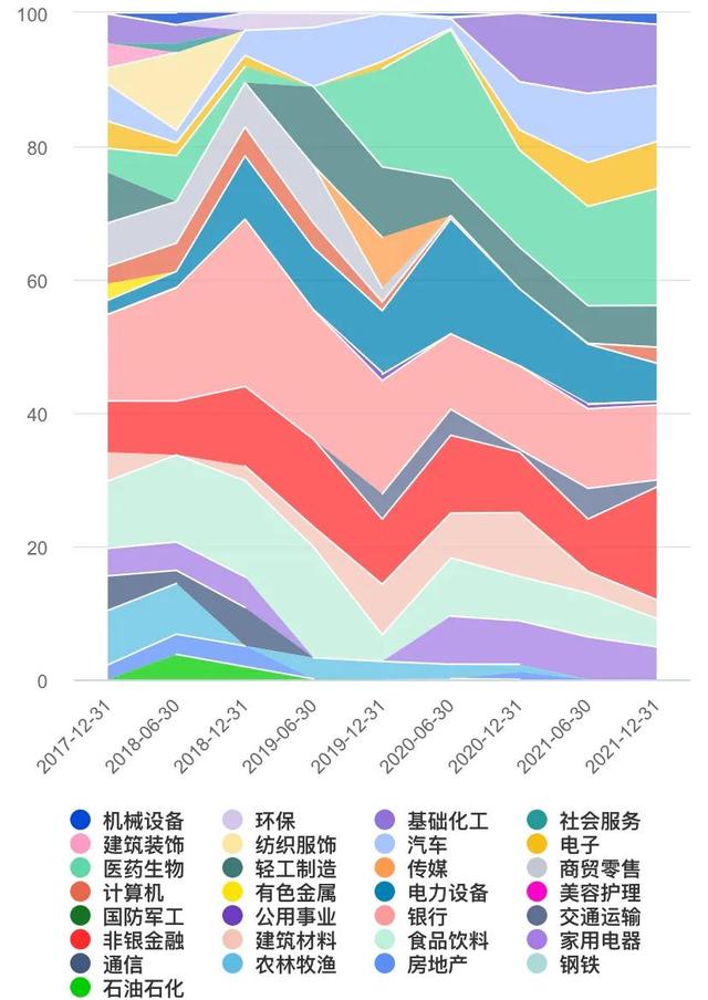 重仓股的平均市盈率22.4,平均市净率为4,平均roe高达18.3;所以重仓股的平均估值较低。