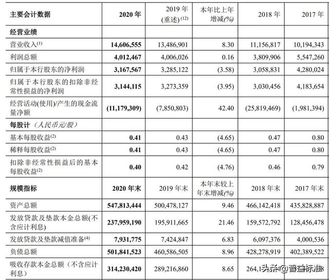 主要是以下几个:营业收入、净利润、净息差、成本收入比、ROA(资产收益率)。