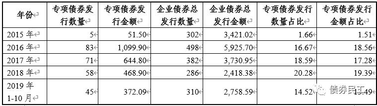 表4 2015年-2019年10月战略性新兴产业专项债券发行情况