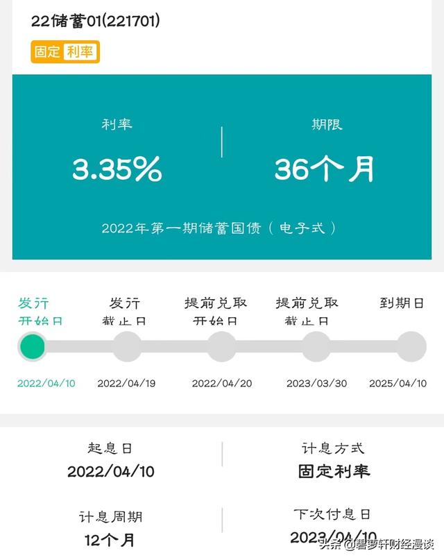 2022年发行的第一期三年期电子式储蓄国债