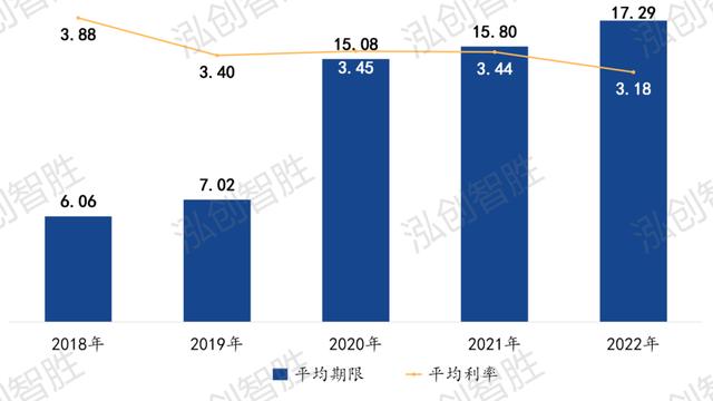 平均期限不断延长,平均利率持续下降。对比2018年到2022年新增专项债券平均期限利率情况,平均期限从2018年的6.06年不断延长到2022年的17.29年,平均利率从2018年的3.88%,持续下降到2022年的3.18%。