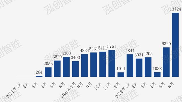 图1 2021年6月-2022年6月每月新增专项债券发行金额对比(亿元)
