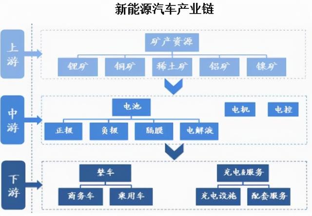 新能源的产业链过去两周答疑都发布过,新能源汽车的上游(原材料、金属)、中游(电池)、下游(整车)。