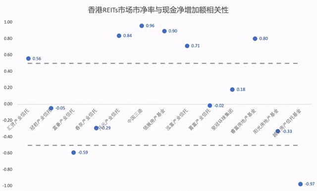 香港13支REITs中,仅3支市净率与经营现金流表现出较高相关性。