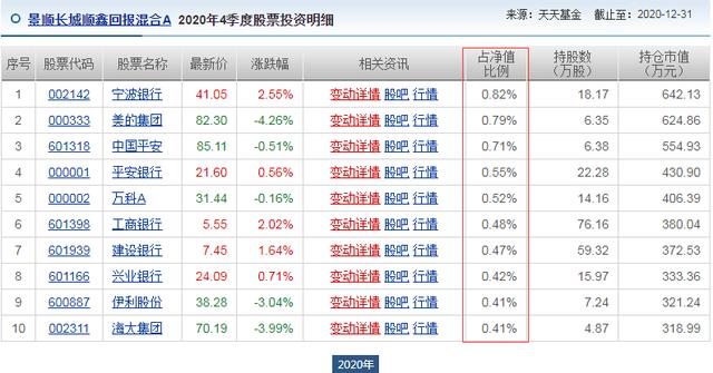 主要摘自景顺长城顺鑫回报混合2020年四季报: