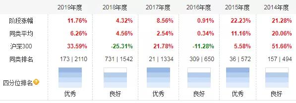 二级债基,最近6年均排名前50%,简单算数平均一下年化收益,还不错,比5%的银行理财好很多。