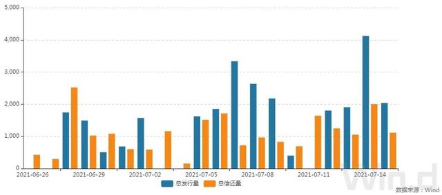7月15日,债券市场共发行198只债券,总发行量2037.14亿元,195只债券到期,99只债券提前兑付,1只债券回售,无债券赎回,总偿还量1114.68亿元,当日净融资额为922.46亿元。