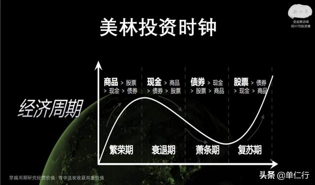 时间精力比较多的投资者,可以借鉴【美林投资时钟】模型,从宏观中研究投资策略。
