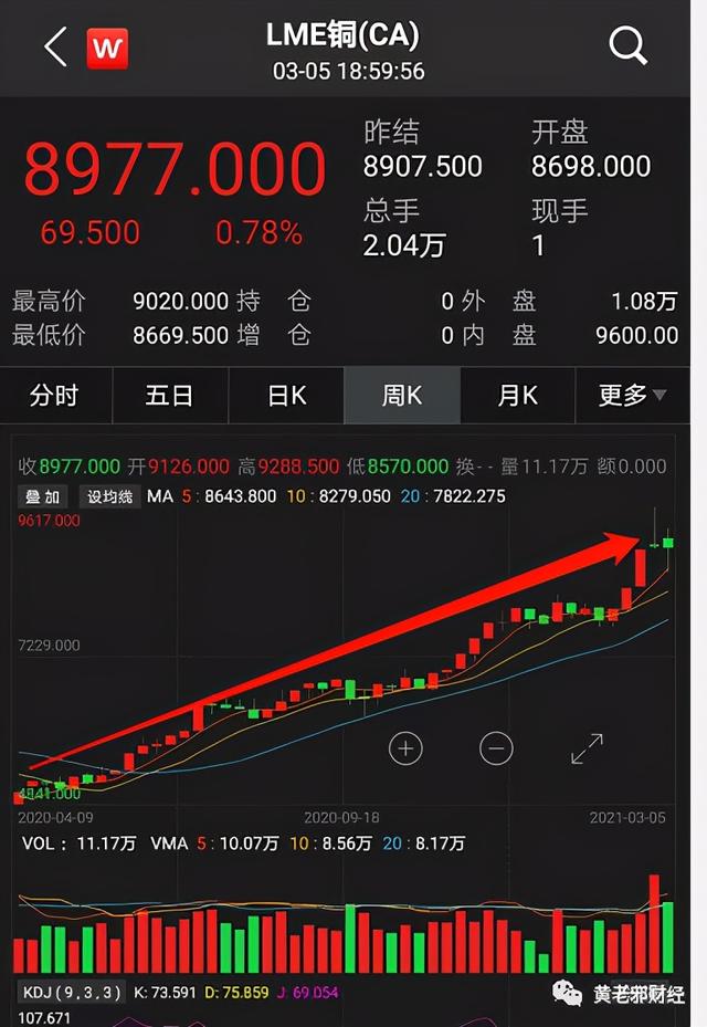 原油、铜、大豆的周线图都是倾斜向上,而且已经持续了很长时间。