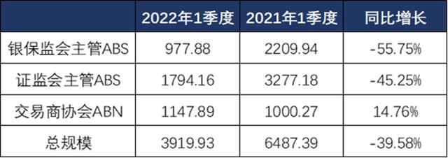 ABN和ABS、CLO(证监会和银保监会主管的ABS)都是资产证券化产品,都叫资产支持证券。在证券化市场中,按照监管机构对资产证券化大致可分为四大类,分别是证监会主管的企业ABS即资产证券化;银监会主管的信贷ABS;保监会主管的保险ABS;以及交易商协会ABN。2021至2022年1~2月交易商协会ABN发行规模统计