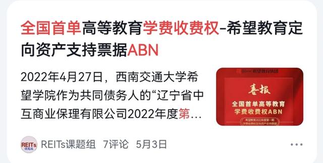 近年来,在银行间市场,教育类“学费收益权”ABN融资产品成功发行有过数次。