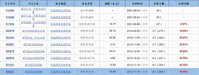 目前,黎颖芳共管理7只产品,其中建信纯债是她的代表作,管理时间8年又354天,任职回报达48.45%,今年来实现涨幅0.20%3.74%,同类排名为536|1947。