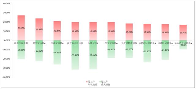 近三年年化收益超20%的可转债基金有三只,分别是浙商丰利增强,年化收益27.17%;