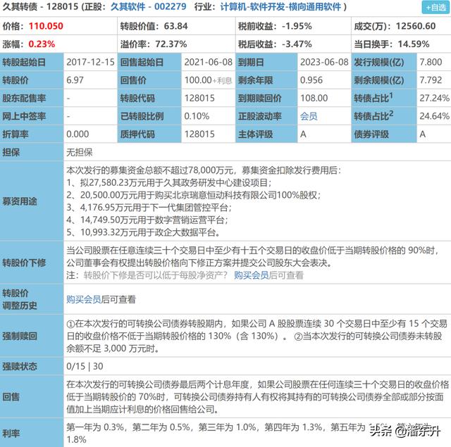 在这里我们以久其转债为例进行说明: