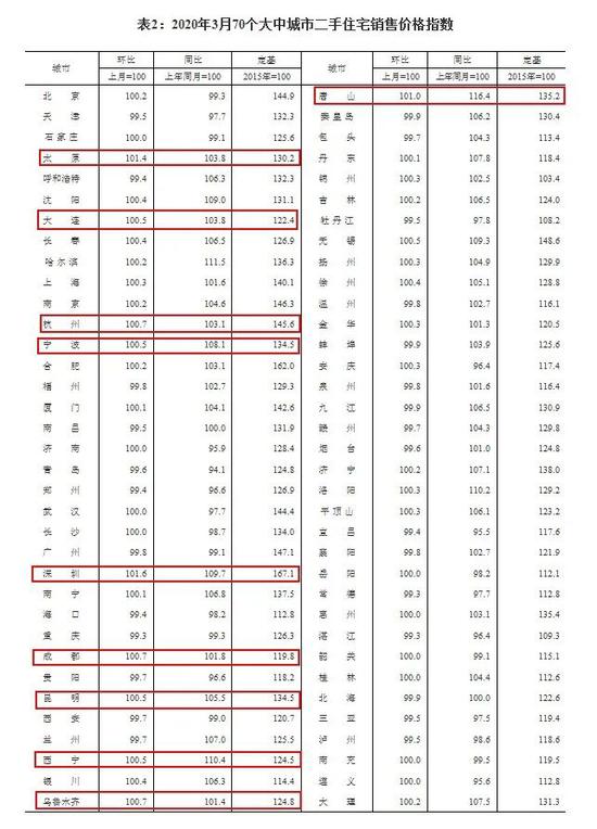 4月16日,国家统计局发布了2020年3月份70个大中城市商品住宅销售价格变动情况。相比于2月份,3月新房价格环比上涨的城市明显增加,回升至38个,西宁、杭州、银川等城市涨幅超过1%;二手房价格环比上涨的城市数量升至32个,深圳等城市领跑。