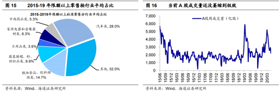震荡蓄势,为3浪上涨做准备。我们一直提出,上证综指19年2440点=05年998点,2440点是A股第六轮牛市的起点,牛市有三个逻辑:牛熊周期轮回、企业盈利见底回升、大类资产偏向股市,这次疫情不改牛市趋势,但改变了牛市节奏。上证综指2440-3288点为牛市1浪上涨,3288点至今是牛市2浪回调,疫情拉长了2浪调整时间(波浪理论:1浪、3浪、5浪为上涨浪,2浪、4浪为回调浪)。上证综指2646点大概率是牛市2浪调整的低点,目前处于底部区域的区间震荡,为牛市3浪的上涨蓄势,类似14年上半年,最终3浪启动需要基本面数据回升支持。如果没有疫情,19年12月初就是牛市3浪起点,当时工业增加值、工业企业利润、PPI等数据持续改善,A股也迎来戴维斯双击,然而这次疫情出现后,今年一季度基本面承压深蹲,现在重新等待基本面数据。当前市场对基本面预期较低,目前Wind一致预期2020年中国GDP增速2.3%,后续需要两会政策和海外疫情数据。两会焦点议题是GDP增长和财政赤字率,两者决定着后续基本面回升力度。如果美欧疫情确认得到控制,下半年外需压力缓解,国内GDP增速及企业盈利预期存在上修的可能,比如今年的上市公司净利润同比从目前0-5%的预测提高至5-10%。短期看,自319以来反弹已经较为充分,目前国内基本面数据较弱,市场已进入回撤阶段。诱导A股下跌因素包括:一是美欧股市反弹较为充分,类似A股2月底3月初,回补充分后可能下跌回撤,从而拖累A股表现,二是中美再现噪音恐拖累市场风险偏好。从盘面看,3浪上涨前需要成交量、换手率萎缩到很低才会物极必反。一般当2浪末期全部A股成交量萎缩至1浪高点的40%左右时,市场情绪悲观到极致,此后往往峰回路转,市场有望迎来牛市3浪阶段。2019年来的这轮牛市,牛市1浪高点前后的成交量均值为1098亿股左右,今年2/25-3/2日均成交量1026亿股为阶段性高点,与1浪高点接近,最近5日成交量均值为518亿股,仅为前期高点的47%,当前成交量萎缩程度还不够。最近5日全部A股换手率为0.98%,而2019/01/04上证综指低点前后为0.6%左右,目前换手率还未充分萎缩。
