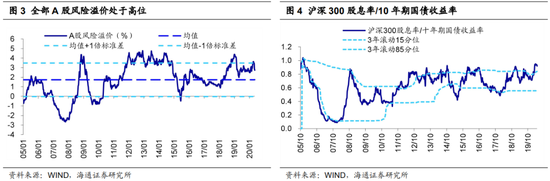 目前估值在低位,关键看盈利。2019年上证综指均值为2920点、振幅为34.7%,而今年以来年均值为2906点、振幅为14.5%,对比历史今年市场上下振幅太低,未来中枢上移扩大振幅还是下移扩大振幅,取决于估值状况和盈利增长。从估值角度看,目前A股处在历史低位,今年以来A股(TTM,整体法,下同)、PB(LF,整体法,下同)均值为17.3、1.7倍,与2019年的均值16.6、1.7倍差不多。考虑到今年流动性较为充裕,2019年10年期国债收益率均值为3.2%,而今年初以来为2.8%,充裕的流动性将对A股估值形成支撑。我们进一步从三方面来考核估值:第一,目前A股PE、PB分别为18.5、1.6倍,处于2005年以来从低到高44%、12%分位,3月19日上证综指2646点时分别为16.0、1.6倍,处于2005年以来从低到高28%、5%分位。第二,从风险溢价看,我们以1/全部A股PE-10年期国债到期收益率作为股市风险溢价的衡量指标,2005年以来历史数据显示这一指标存在明显的均值回归特征,在3月19日上证综指2646点时风险溢价为3.51%,截至5月15日为2.72%,处于2005年以来自下而上68%分位。第三,对比国内债券,从股债收益率(沪深300股息率/10年期国债到期收益率)看,3月19日上证综指2646点时股债收益比为0.94,截至5月15日,沪深300股息率为2.39%,10年期国债到期收益率为2.68%,两者比值为0.89,处于2005年4月(历史最长数据)以来比值从低到高的95%分位。从盈利角度看,历史上每年上证指数均值年度涨幅往往与当年A股净利润增速趋同,两者相关系数达到0.61,2019年上证指数均值为2920点,全部A股净利同比为6.4%,今年以来A股仅为2906点,指数中枢能否突破去年关键在于业绩能否改善。综上,目前A股估值处在历史低位,未来市场走势关键看盈利。