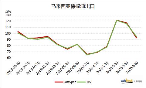 据马来西亚检验机构AmSpec Malaysia周四公布的数据显示,马来西亚8月1-20日棕榈油出口量为925,083吨,较上月同期的1,170,709吨下降21.0%,降幅较前15日再度扩大;船运调查机构ITS公布的数据则较上月同期减少18.2%至946,338吨。受印度采购减少影响马棕8月出口趋弱,产量修复预期叠加出口下滑预期对棕榈油价格上涨动能形成压制。