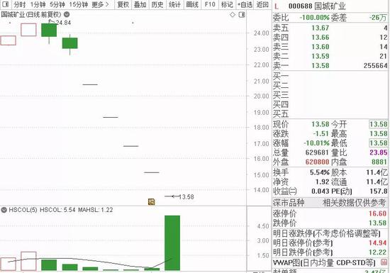 令股民最苦闷的是国城矿业,至今已经连续5个一字跌停了,根本不容易跑出来。此前,据中国基金报报道,有消息称,股票的闪崩系杭州一配资公司被公安调查引起。国城矿业证券部工作人员也表示并不清楚配资公司被查情况。