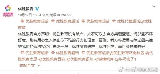 原标题:优胜教育创始人回应退费风波:不会破产,不会跑路