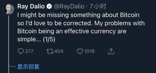 投资大师达里奥曾多次唱空 对比特币态度动摇?