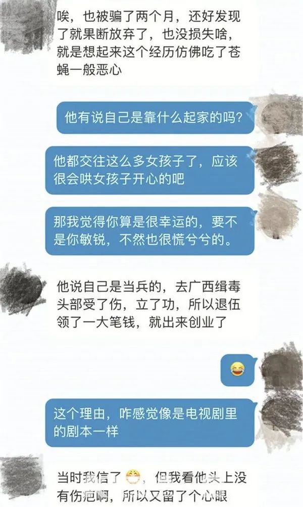 在之后的聊天中,他便时常对她们嘘寒问暖,做她们的“感情树洞”,博取好感。