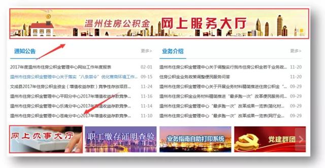 1、登录市住房公积金网站(网址:http://zfgjj.wenzhou.gov.cn),在网站首页点击【网上办事大厅】。