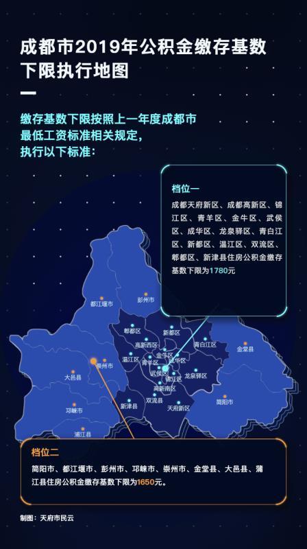 缴存基数下限按照上一年度成都市最低工资标准相关规定,执行以下标准: