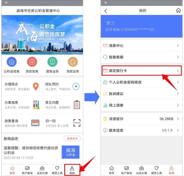 为方便广大市民办理公积金业务,近年来,威海公积金积极探索智慧互联新模式,目前多项业务已实现全程线上办理,助您足不出户零跑腿一次办好。在使用手机客户端及网上服务厅办理线上业务时,需先绑定手机号码及个人银行账户,今天为大家介绍两种操作方法,欢迎大家收藏备用!