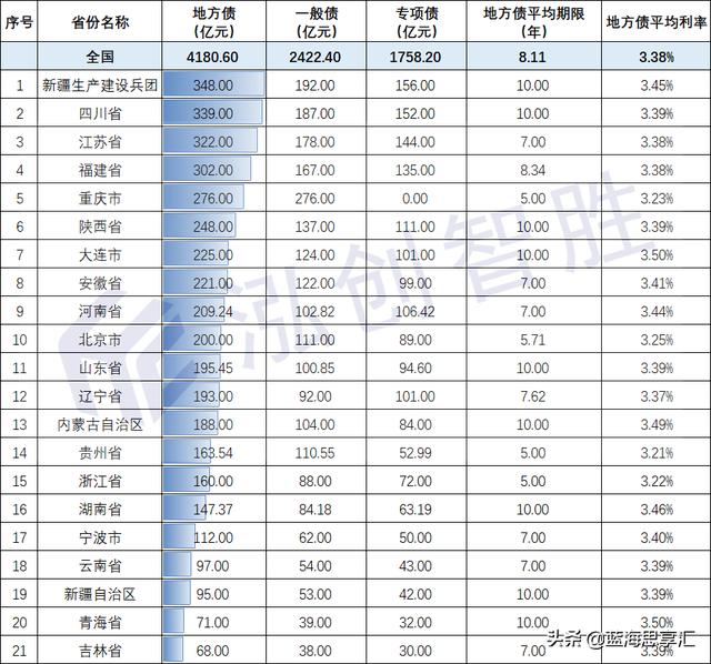 2021年全国成功发行45只地方政府债券,规模为4180.60亿元。(详情见:表1-2021年截止至2月28日全国各省市地方债发行情况汇总)