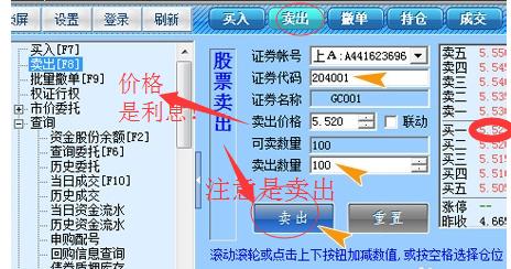3、“卖出价格”。这里的卖出价格指的是操作一天逆回购的利率了,而非股价。因为利率是波动的,所有这里的也是不断变化的,可根据当天的情况自己定。需要一些操作技巧,如来在后面说;
