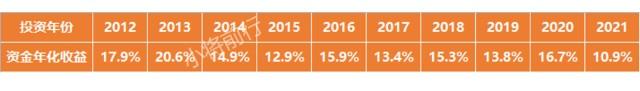 如果投资者在这十年以来某一年的开年第一天买入并持有到现在,小将做了统计,下面是买入的年化收益率,总体来看投资收益平均值基本在15%左右,是个不错的回报率。