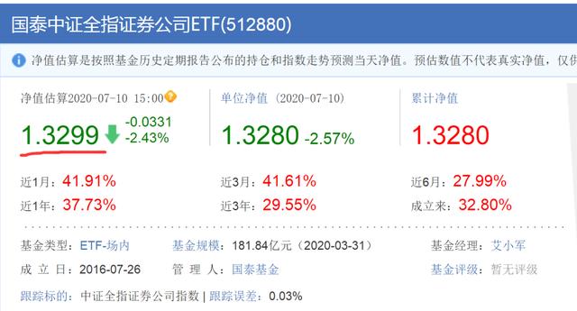 场外净值怎么看?你随便去一个能买场外基金的软件,去行情页查看就行了。以证券ETF为例,场外基金页面看是这样的: