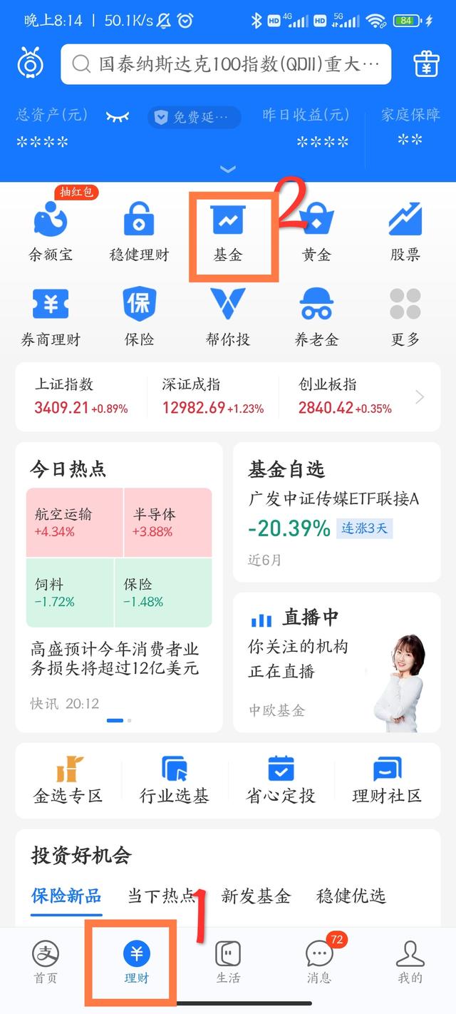 第一步:打开支付宝,点击下方的理财,切换到如下页面;