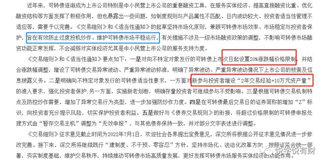 近几年可转债可香了,基本上都是捡钱的操作,中签就是赚,但是近期可转债炒作太热,像前段时间上市的盘龙转债、永吉转债,中一签都能获利300%-500%了,现在新规不仅限制了涨跌幅,还设置了准入门槛。