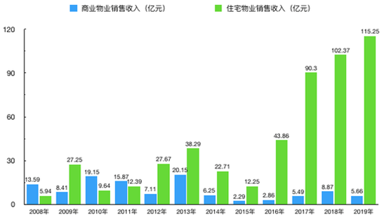 纵观明发集团的项目,住宅商用综合体占比居多,纯住宅项目占比较少。2010年左右,明发集团的商业物业销售还算强劲,可之后尤其是从2014年开始,公司的商业物业开始走下坡路,反之住宅物业的销售收入越来越高,逐渐成为公司的绝对营收主力。这背后是公司商业地产运营管理能力的欠缺,在越来越多的标杆房企入局商业地产之后,竞争压力加剧,多地明发商业广场被曝经营现状不佳。