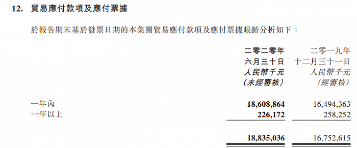 注意细节。中期业绩公告显示,正荣地产2020年6月末,其贸易应付款项及应付票据188.35亿元,2019年末为167.53亿元。