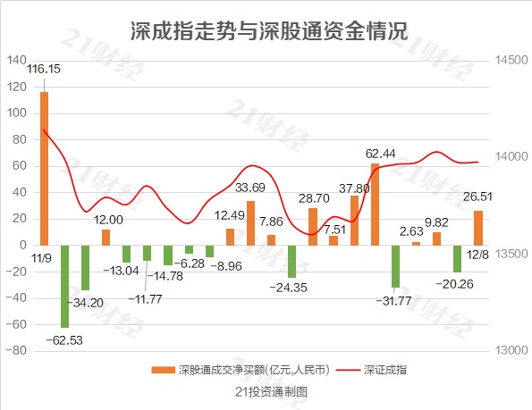 越声理财表示,北向资金总体以持续净买入为主,并且更青睐沪市股票。上证指数在12月2日盘中创了年内新高后就连续四个交易日震荡休整,但沪股通期间却持续净流入,4日合计净流入109.77亿元,而深股通小幅净流出13亿元。