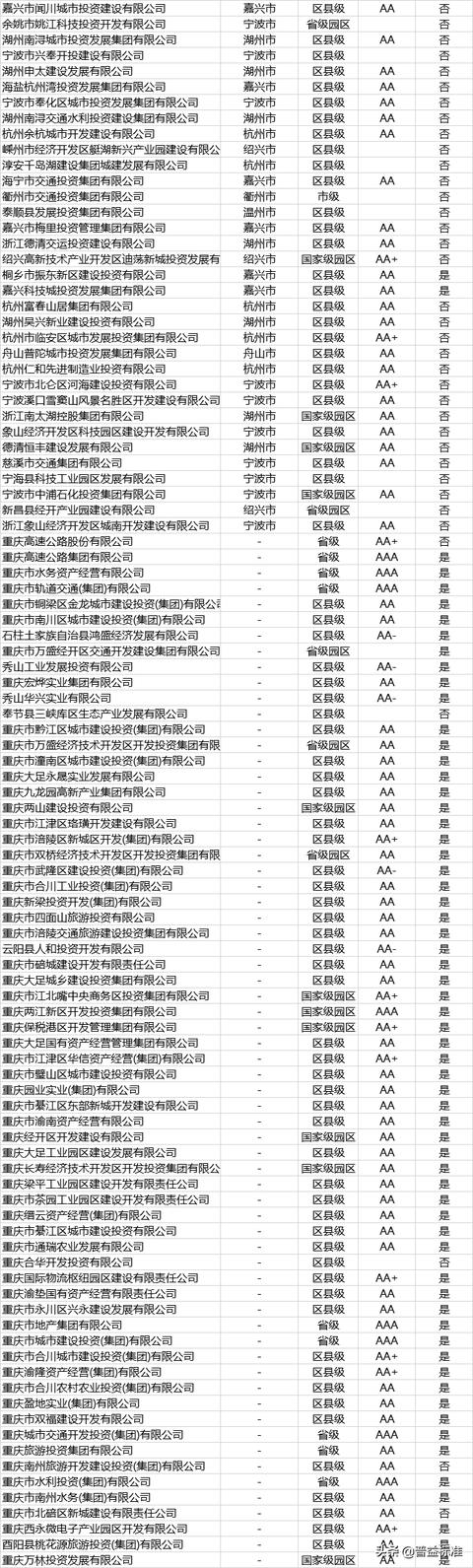我们判断了城投平台名单之后,还人工整理了城投平台的具体区域及行政级别。我们采用实质重于形式的原则进行判断,不仅仅关注公司的实际控制人,更主要是看公司的业务区域范围以及主要对手方。例如遂宁柔刚投资有限责任公司,虽然控股股东为遂宁市国资委,但主要负责遂宁市安居区的基建及棚改,业务对手方也主要为安居区人民政府。因此,公司的具体区域应为安居区,行政级别应为区县级,而不是Wind所写的地级市。