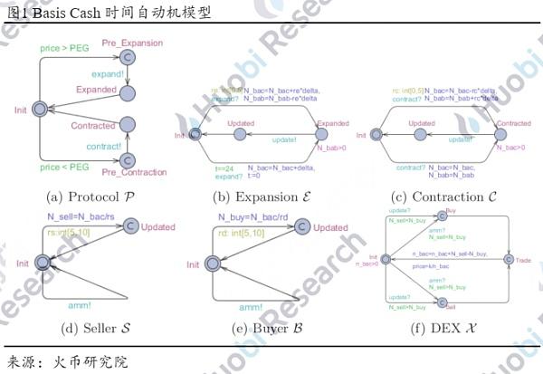 P模拟了核心协议的五种状态,即初始状态,预扩张状态,扩张状态(价格高于锚定价格时),预紧缩和紧缩状态(价格低于锚定价格时)。在扩张和紧缩过程开始前,通道ω_e和ω_c会被激活。